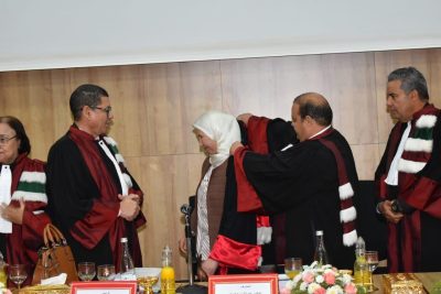 احتضنت رحاب كلية العلوم القانونية والاقتصادية والاجتماعية بمراكش التابعة لجامعة القاضي عياض يوم الخميس 16 يناير 2025 مناقشة أطروحة الدكتوراه في القانون العام و العلوم السياسية تقدمت بها الأستاذة مشكور خديجة عقا المحامية والحقوقية بهيئة المحامين بمراكش، وذلك تحت إشراف الدكتور عبد الكريم حيضرة أستاذ التعليم العالي بكلية الحقوق بمراكش في موضوع : دور القضاء الإداري في تخليق الحياة العامة بالمغرب