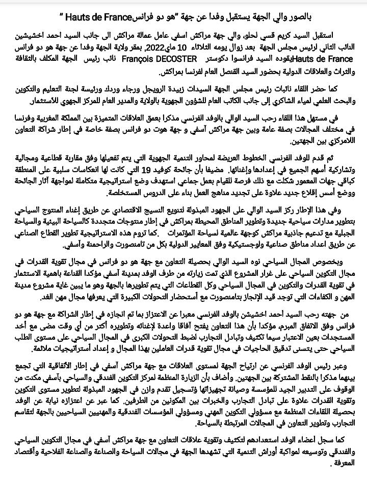 الرئيسيةالمجتمع بالصور والي جهة مراكش أسفي يستقبل وفدا عن جهة “هو دوفرانس”. ب هيئة التحرير تعديل ; 23:51 مايو 10, 2022 0 1٬196 مشاركة المقال : 0 1٬196 مشاركة المقال : FacebookTwitterGoogle+WhatsAppReddItPinterestالبريد الإلكترونيLinkedinPrintBlackBerryViber