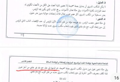 الأمر لا يتوقف عند التداول فقط، بل يمتد إلى كيفية التعامل مع حالات الشغور. فالنظام الأساسي ينص بوضوح على أنه في حالة شغور منصب الرئيس، يتولى النائب الأول مهامه مؤقتًا، أو النائب الثاني عند الاقتضاء، إلى حين انعقاد أقرب جمع عام عادي. أما إذا تعذر على المكتب المديري التداول بصفة قانونية، فإن الحل ليس الاستمرار في اتخاذ قرارات مشكوك في مشروعيتها، بل الدعوة إلى جمع عام غير عادي، يتم خلاله تعيين لجنة مؤقتة لتصريف الأمور الجارية إلى حين انتخاب مكتب جديد.