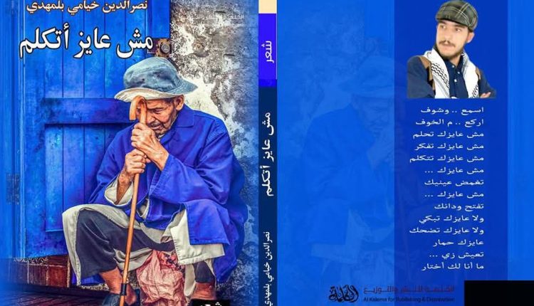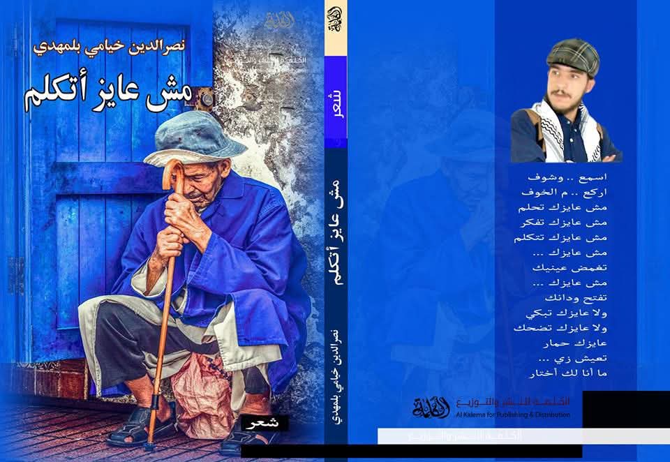 قبل أن يفتح القارئ ديوان «مش عايز أتكلم»، يقرأه بعينيه لا بلغته. الغلاف لا يقدّم زينة بصرية، بل موقفًا: شيخ منكّس الرأس، عصاه مشدودة إلى صدره، باب أزرق خلفه، وانكماش يشبه تاريخًا طويلًا من التعب. الصورة لا تقول “أنا جميلة”، بل تقول “أنا تعبت”. وهنا يبدأ الديوان قبل الصفحة الأولى.