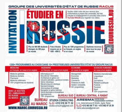 والمركز يمثل منطقة جنوب المغرب حصريا منظمة راكوس روسيا RACUS RUSSIE للجامعات الحكومية الروسية لاستكمال الدراسة في مجالات الطب الصيدلة الهندسة الاقتصاد و ممثل جامعات في قبرص الشمالية و ليتوانيا بولونيا.