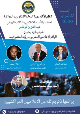 تنظم جمعية الأكاديمية الدولية للتكوين والمواكبة ندوة وطنية مميزة تحت عنوان “واقع الإعلام المغربي: رؤية استشرافية”، احتفاءً بالإعلامي والكاتب المعروف عبد العزيز كوكاس. يأتي هذا الحدث في سياق حفل توقيع مجموعة من مؤلفاته القيمة، حيث ستشكل هذه المناسبة فرصة للغوص في عمق الواقع الإعلامي الذي يعيشه المغرب، واستشراف آفاقه المستقبلية.