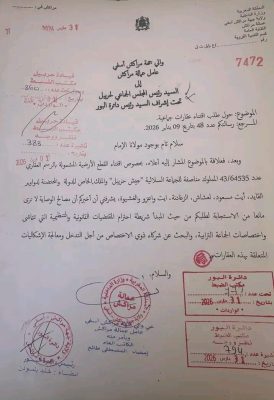 و شددت المراسلة الرسمية على أن هذه الموافقة تظل مشروطة باحترام الاختصاصات القانونية للجماعة الترابية واللجوء إلى شركاء مختصين لمعالجة الإشكالات المرتبطة بالعقار.